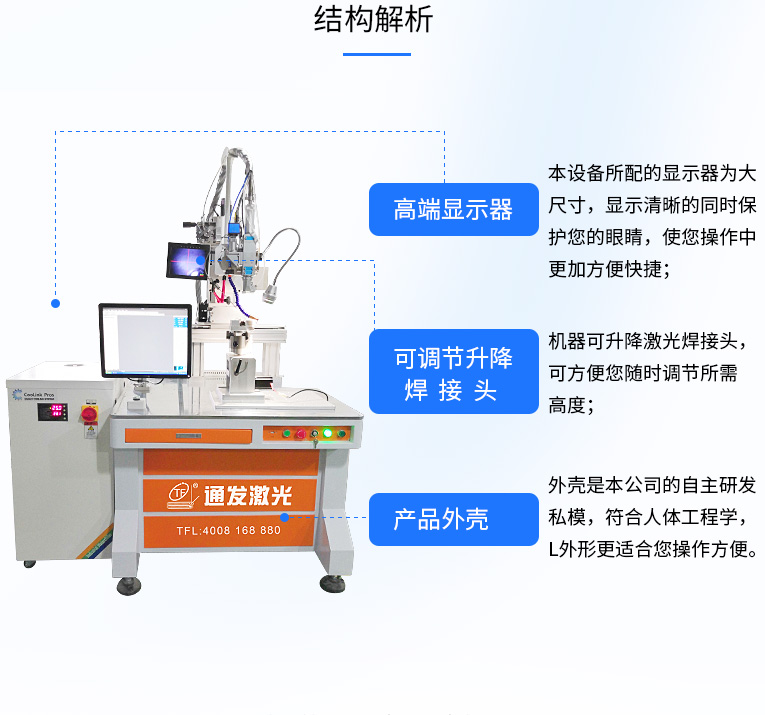 2、強大的PC控制,易于編程、調試和維護。可完成自動或半自動的點焊、對接焊、疊焊、密封焊,針對復雜的平面直線、圓弧及任意軌跡的焊接。